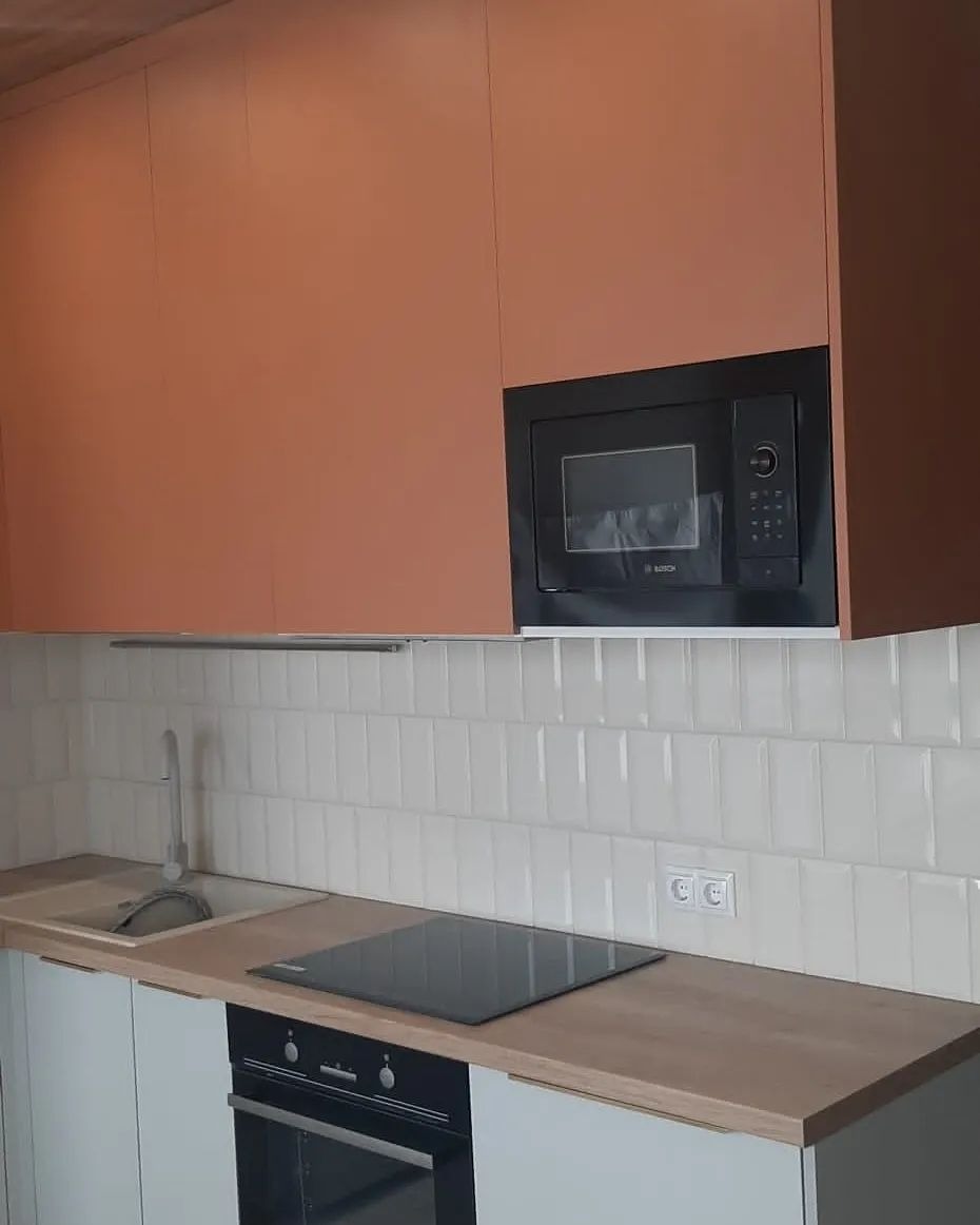 Гарнитур длиной 1.4 метра с фасадами из ДСП.