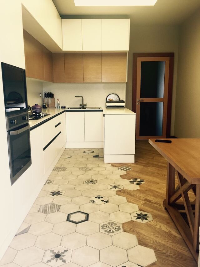 Длина кухни: 3.4х1.4 м. Материал фасада: пластик.
