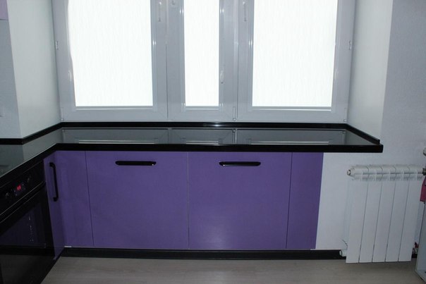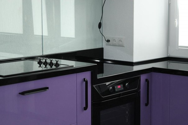 Материал: МДФ. Сиреневый фасад с черными ручками.
