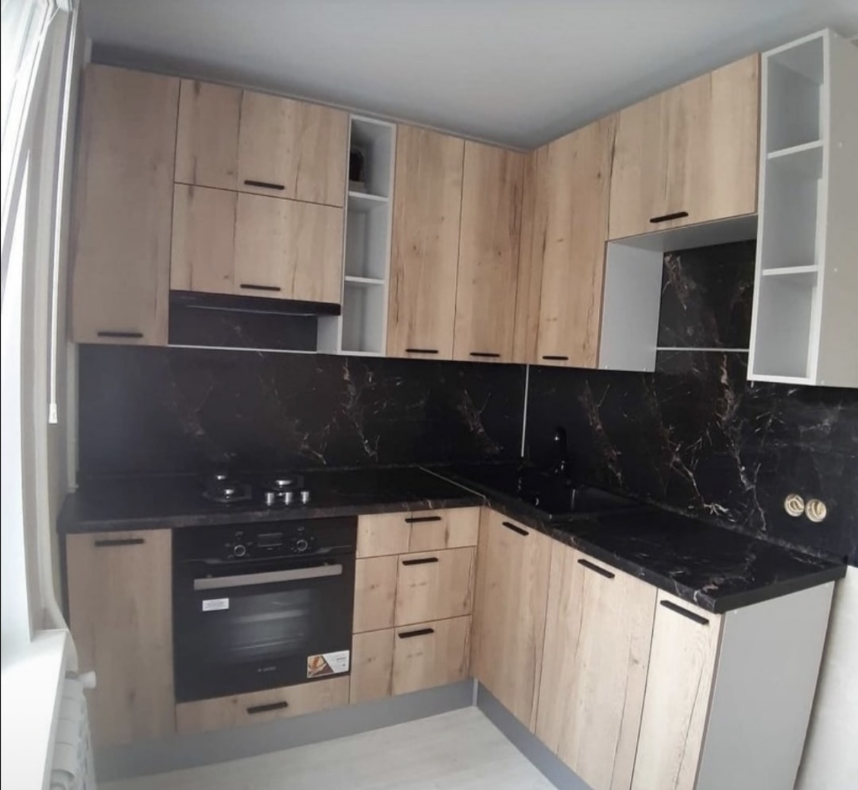 Прямая модульная кухня «Mix Top» 2.8 м, графит серый-дуб крафт золотой