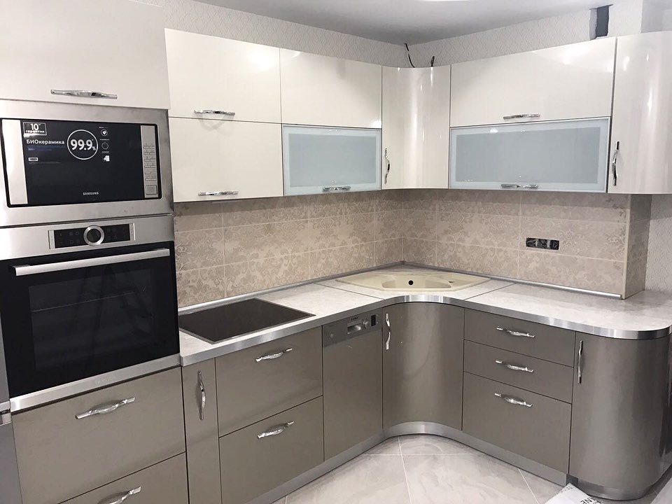 Кухня угловая «Луиза Люкс» 1.2x2.1 м Флитвуд шампань - Флитвуд белый
