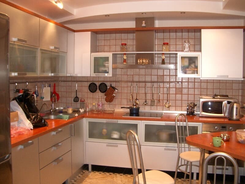 Материал фасада и корпуса: ЛДСП 16 мм. Ширина кухни 230 см.