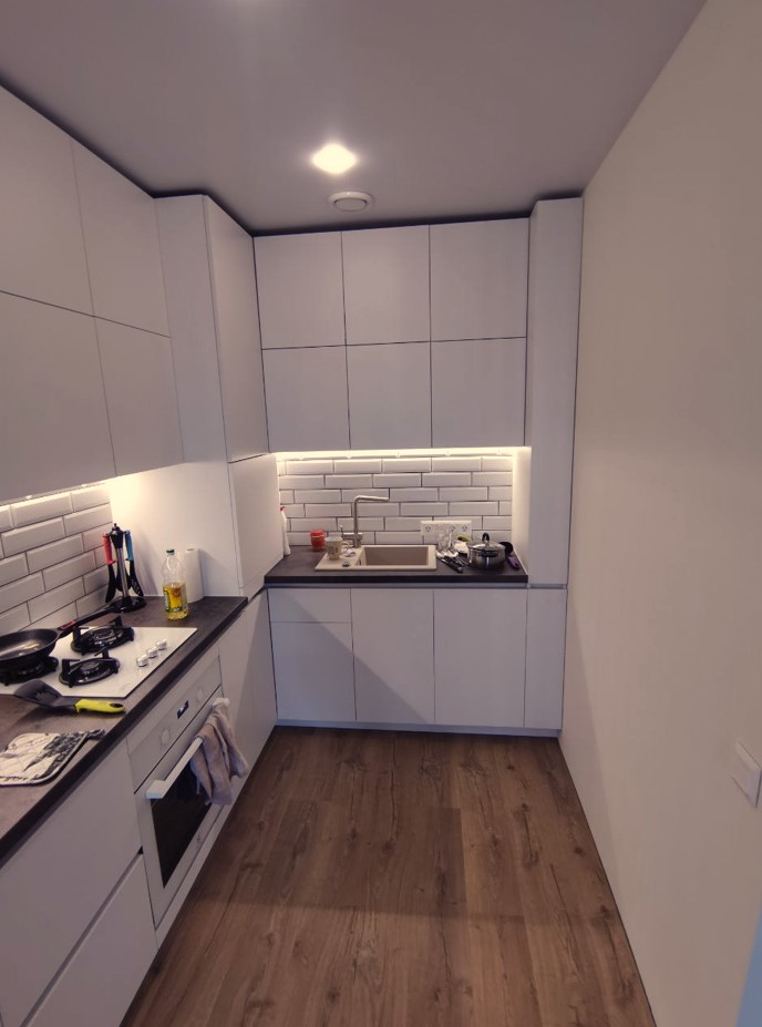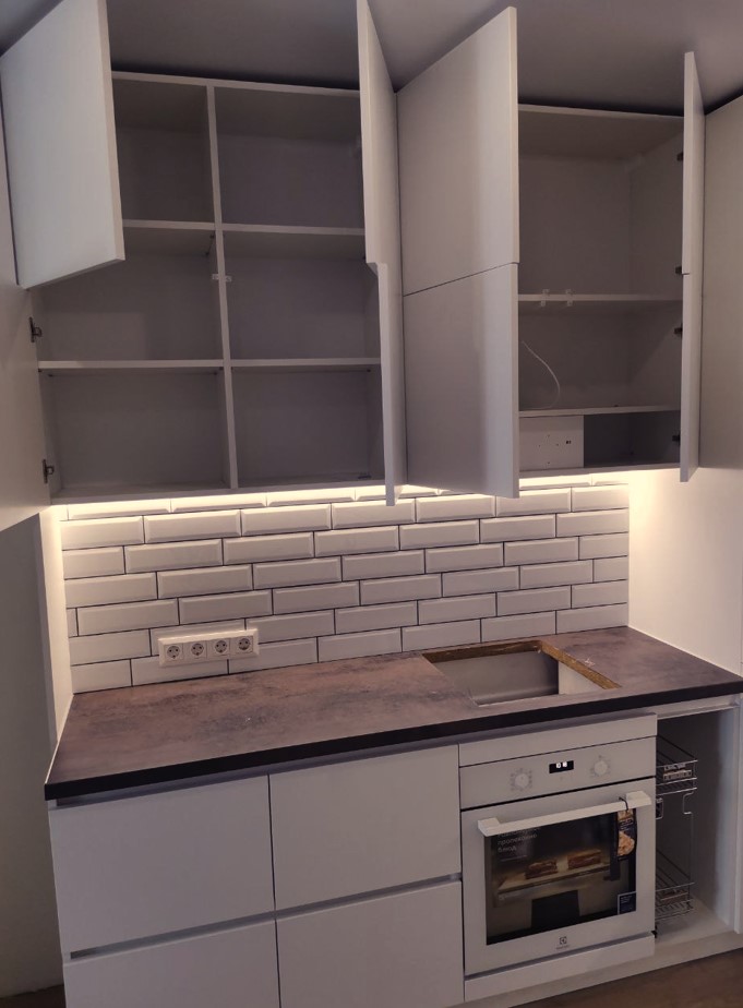Длина кухни: 2.7x1.5 м. Материал фасада: ЛДСП.