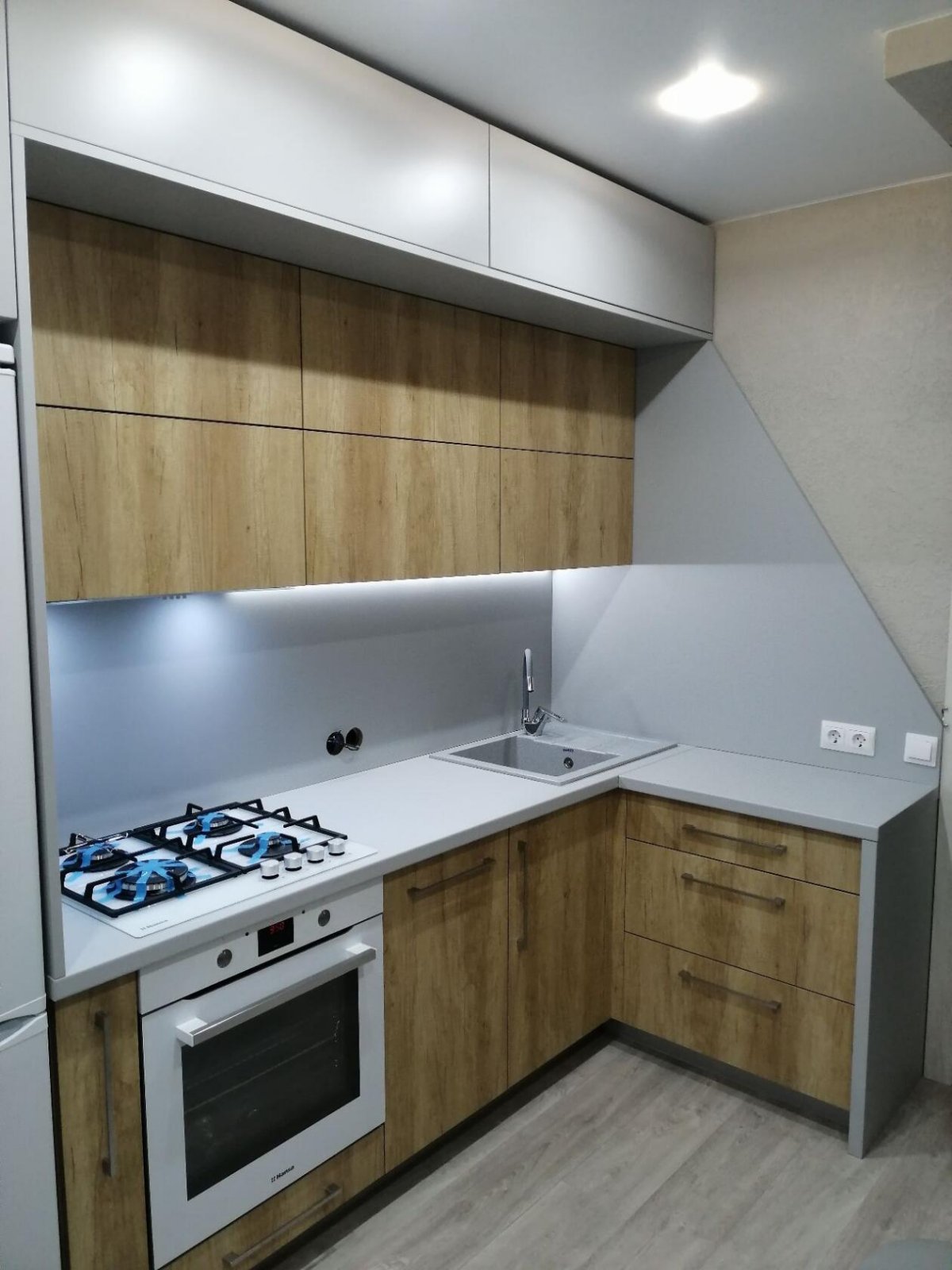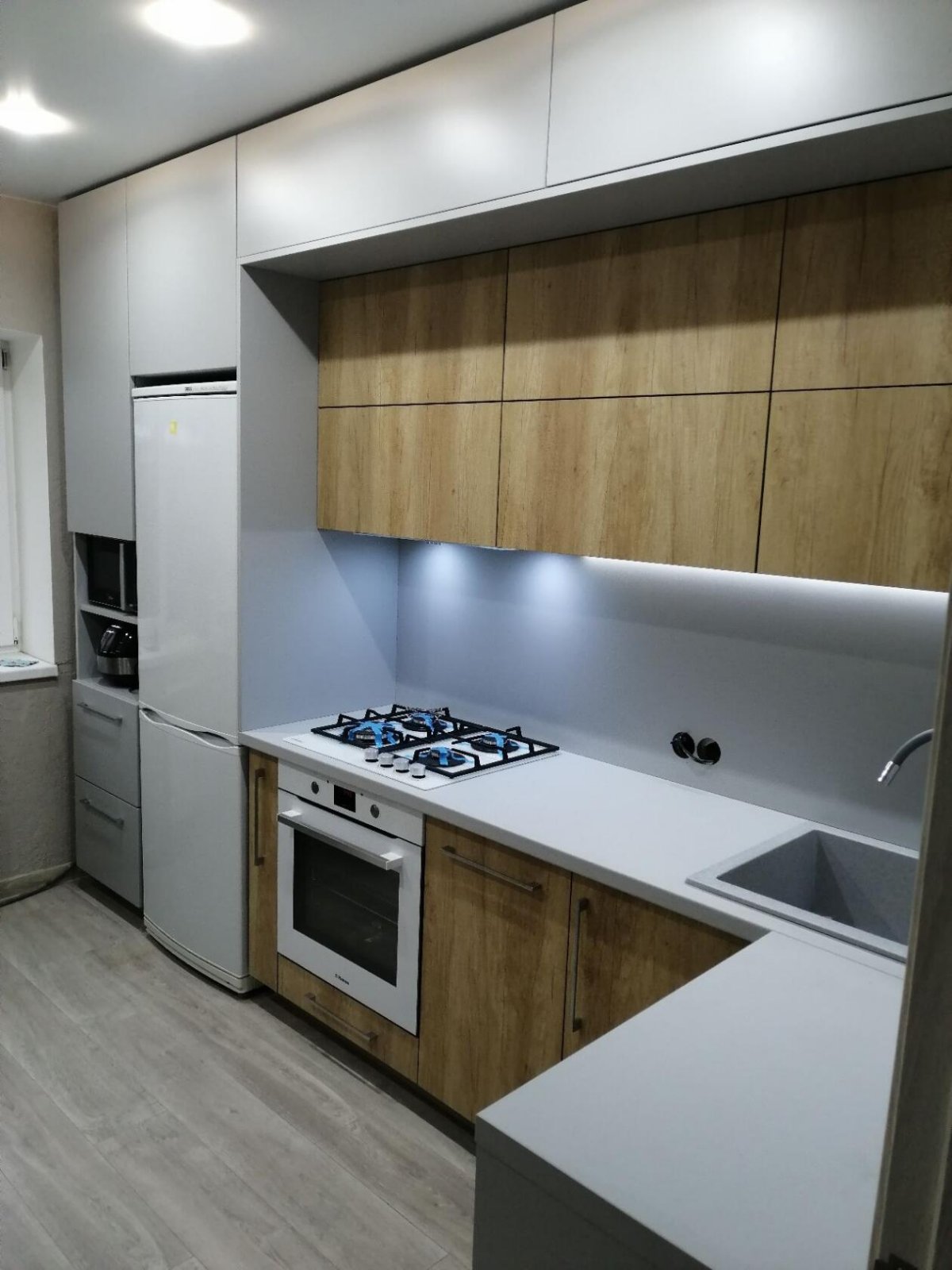 код 113203Подсветка рабочей зоны, ниши для техники, комбинированные фасады.