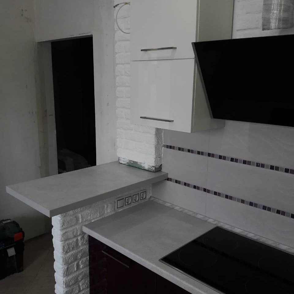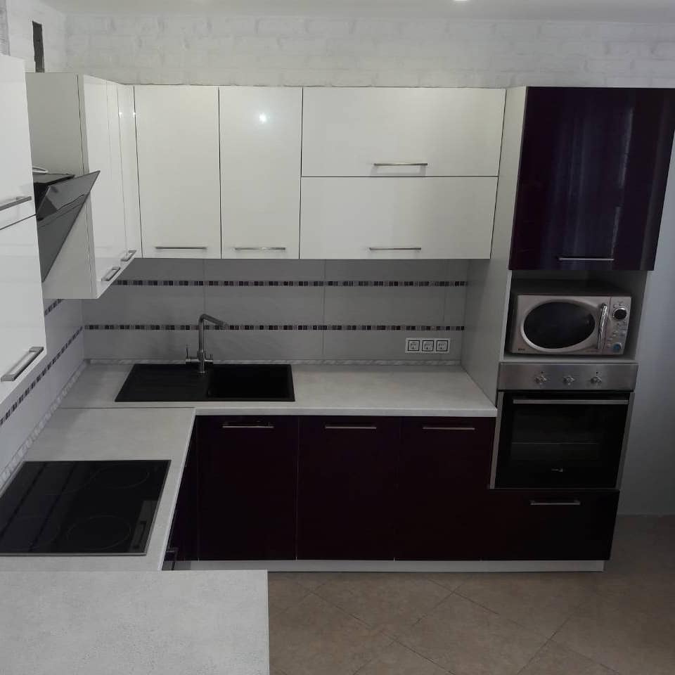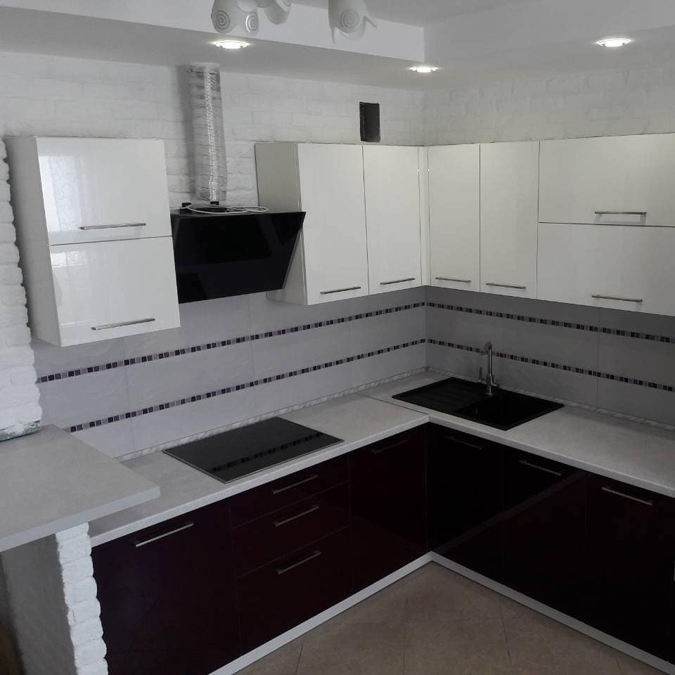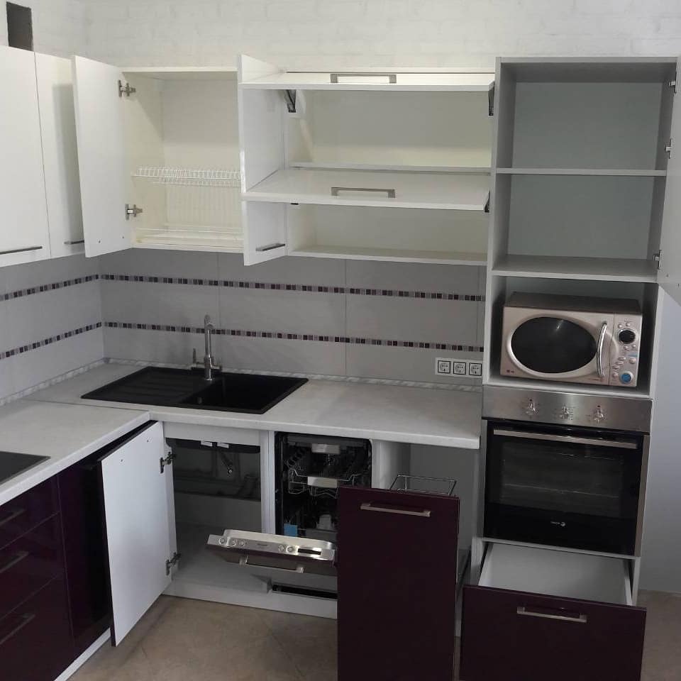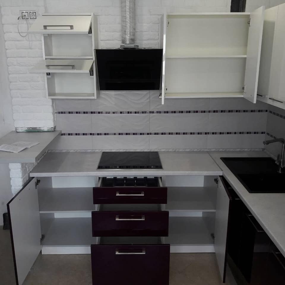 Фурнитура: Blum/GTV с доводчиками. Вместительные шкафчики. Ниши для техники.