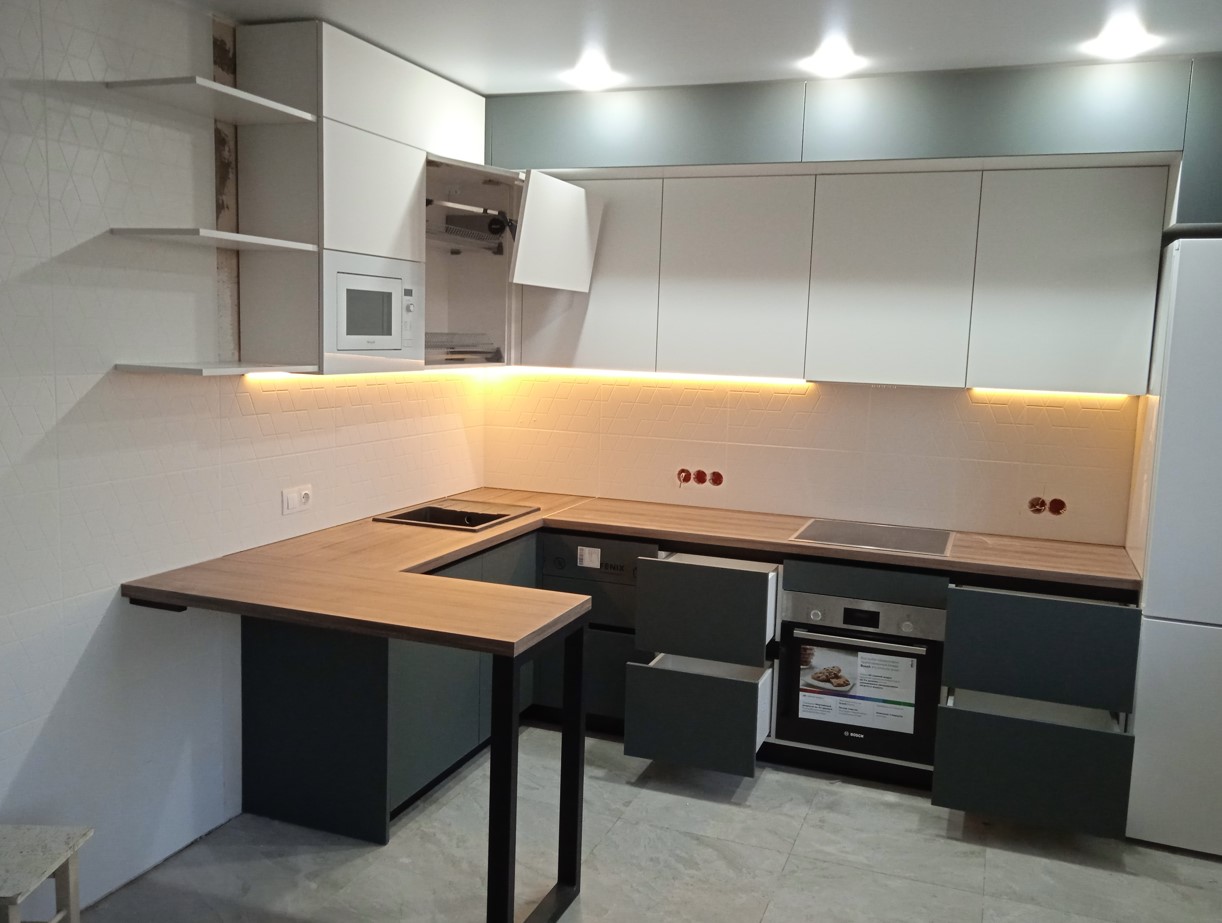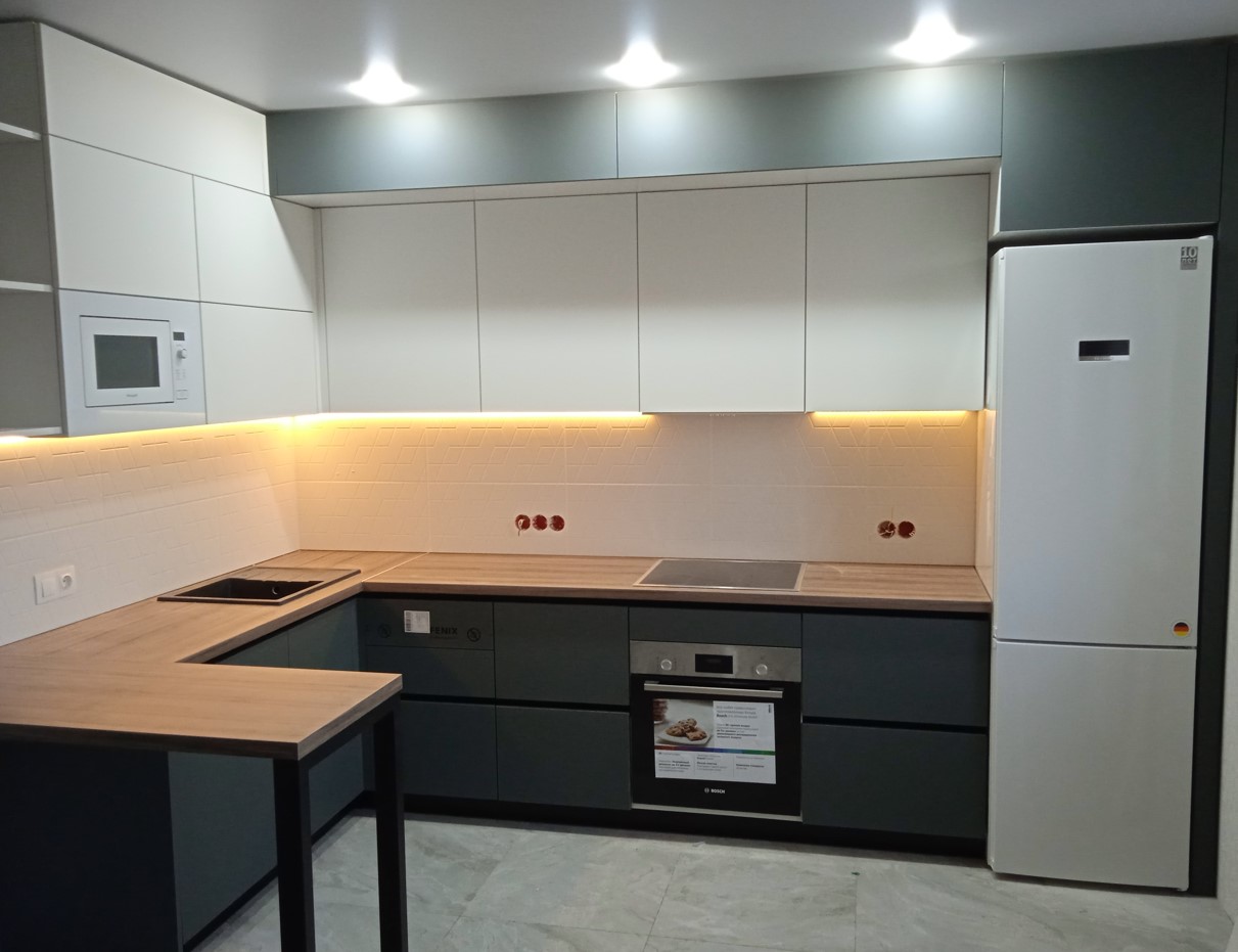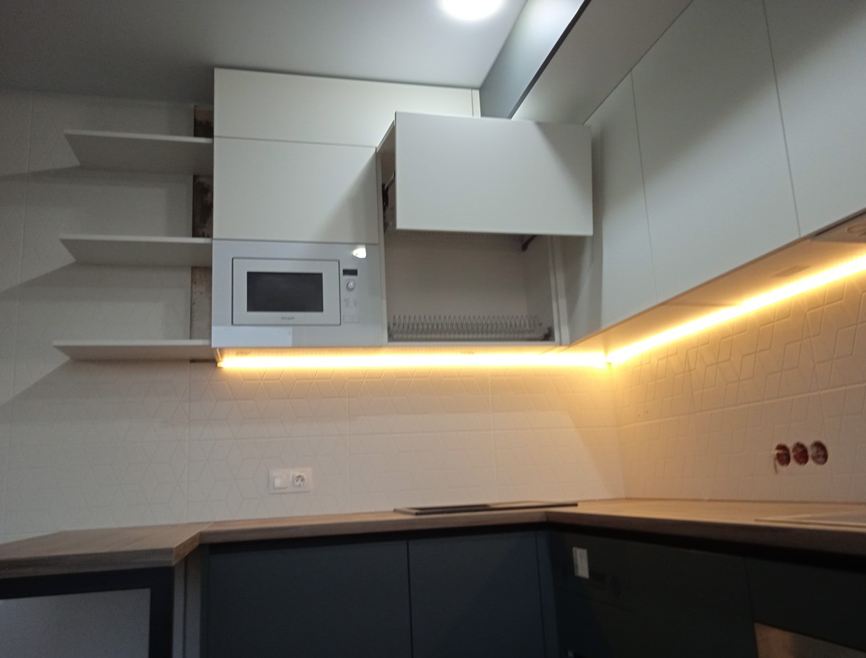 Линейная кухня «Mix-35» 2,0 м, белый-сумеречный голубой