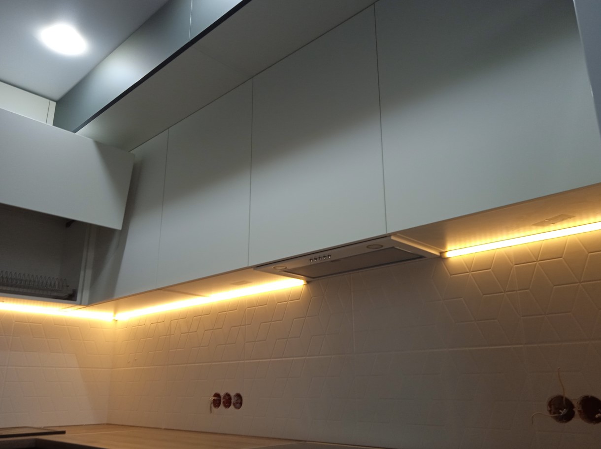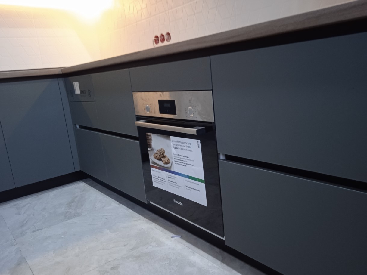 Современный дизайн. Фасады без ручек. Ниши для встраиваемой техники.