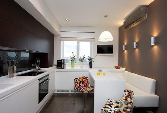 Кухня с пластиковыми фасадами с комбинированным цветом