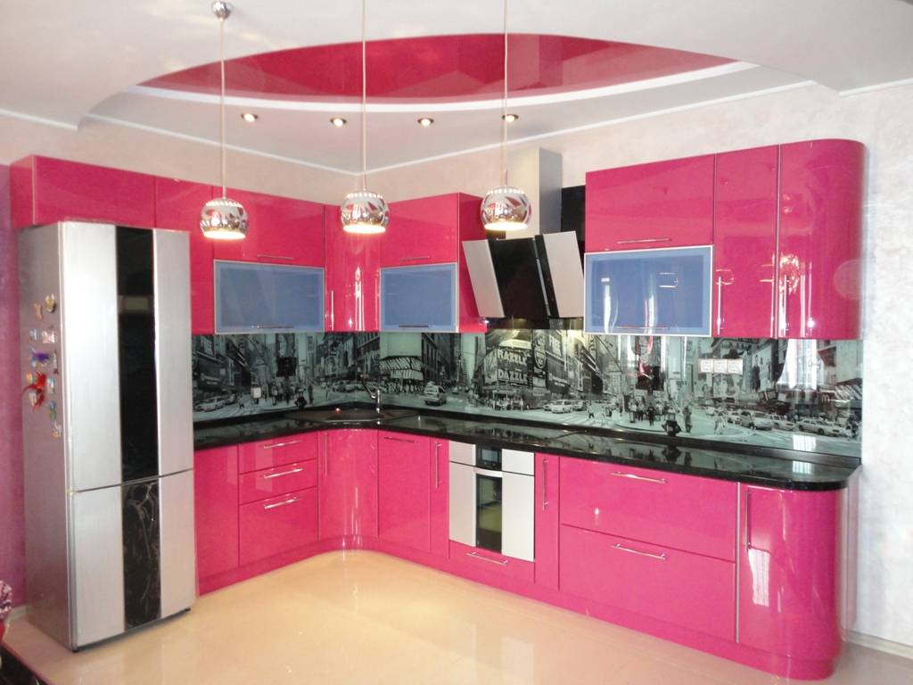 код 114893Глянцевые фасады розового цвета, вместительные шкафчики, удобная фурнитура.