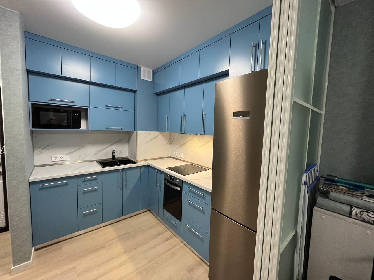 Материал фасада и корпуса: ЛДСП 16 мм. Ширина кухни 220 см.
