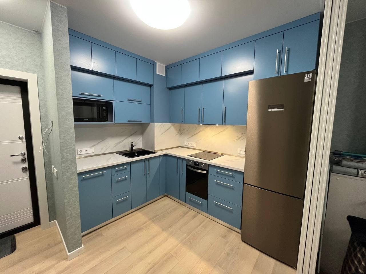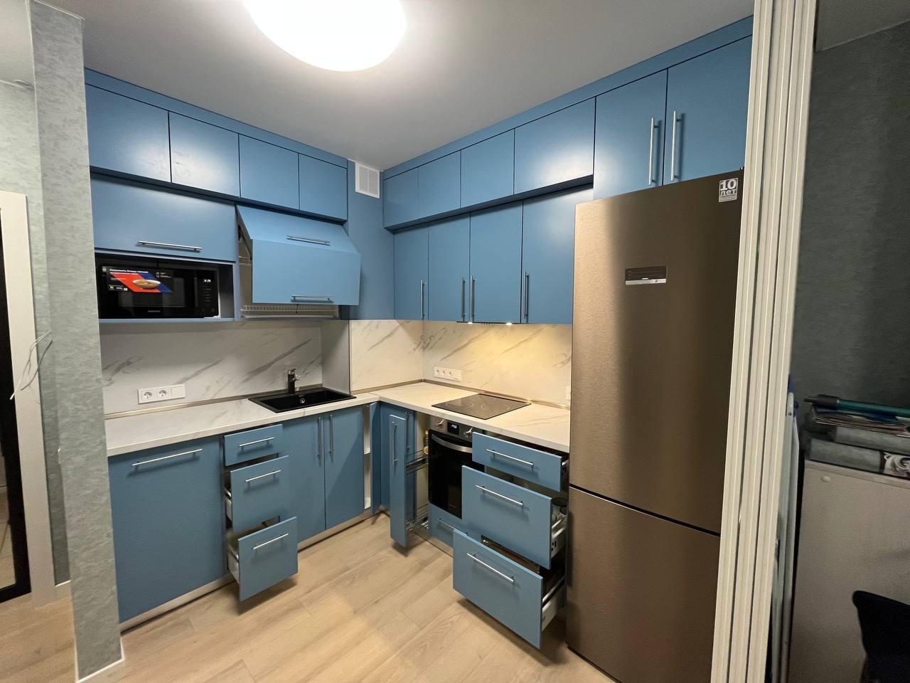 Материал фасада и корпуса: ЛДСП 16 мм. Ширина кухни 260 см.