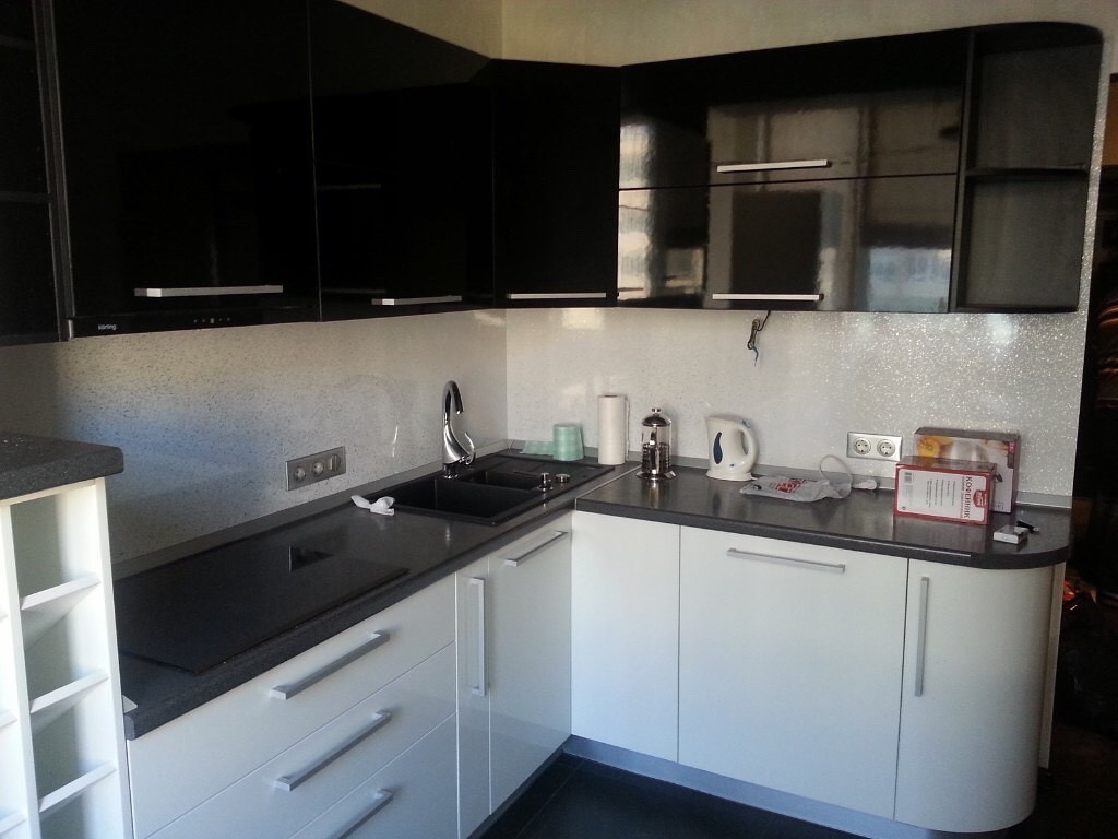 Используются покрытые эмалью фасады МДФ 19 мм с интегрированной ручкой.