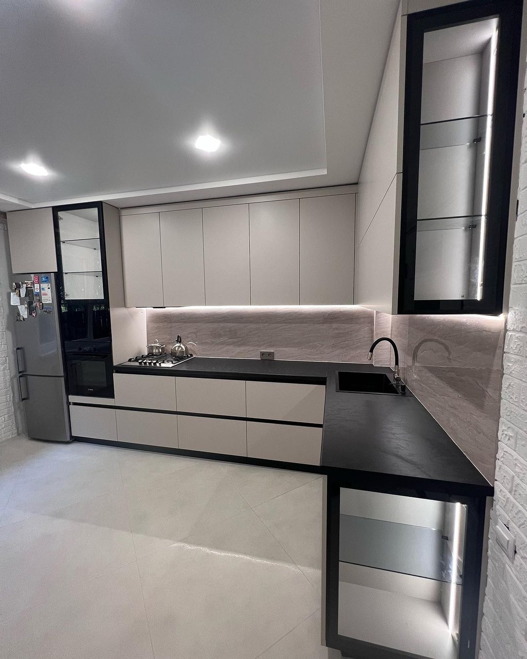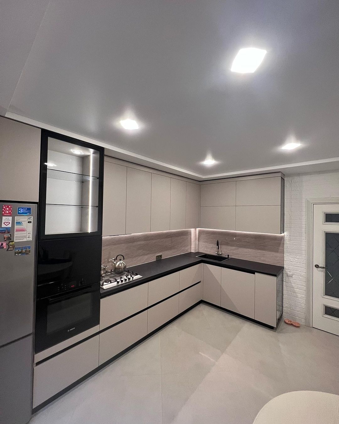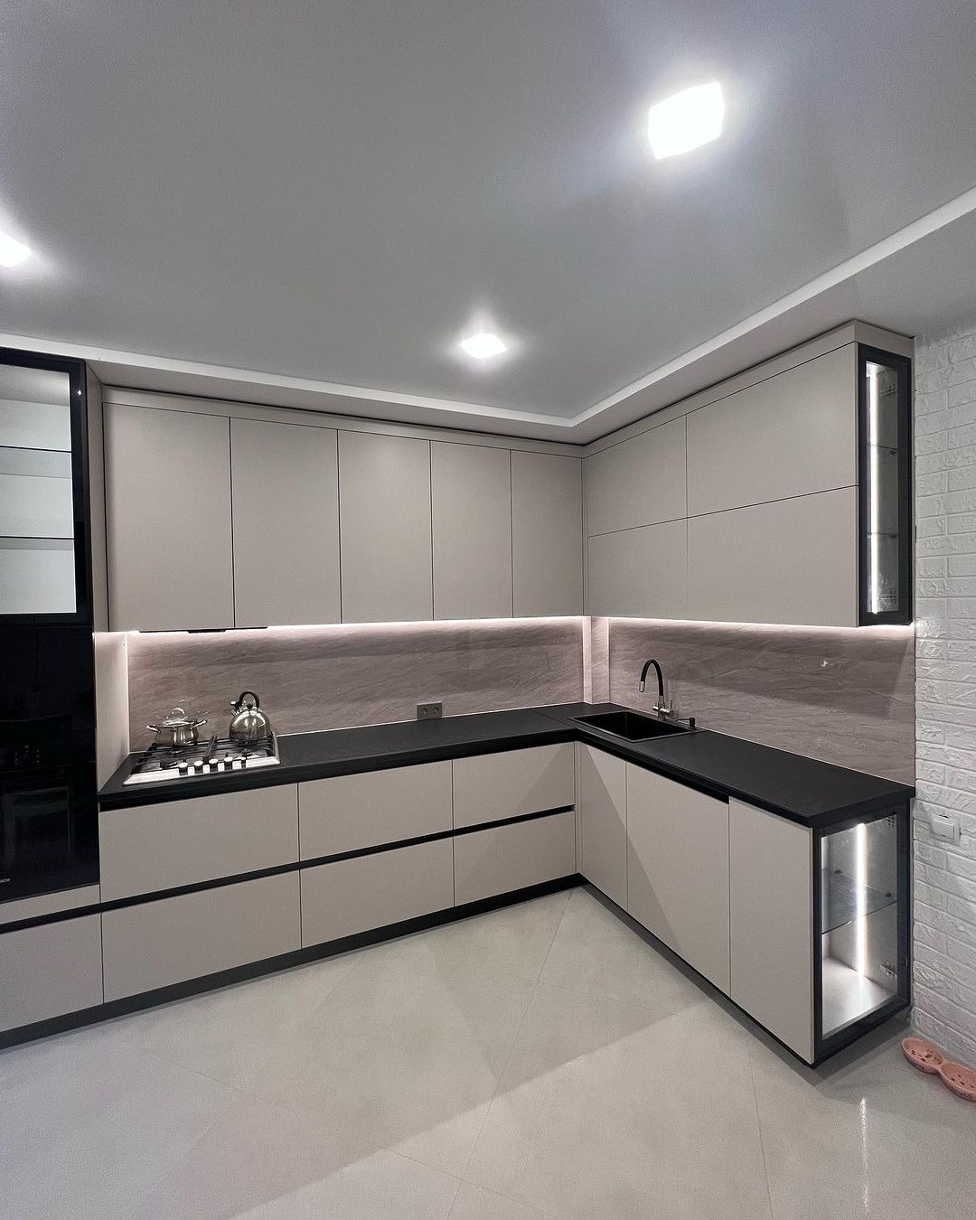 Угловая кухня с витринами
