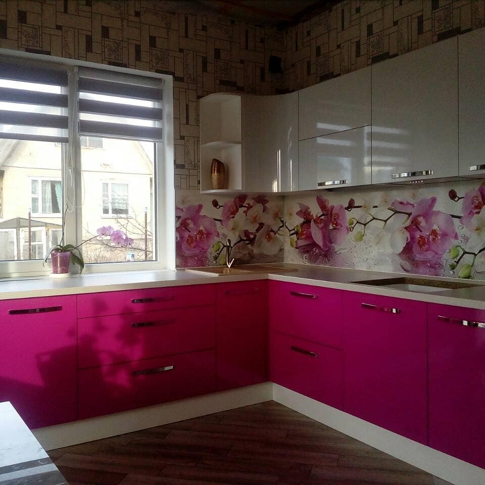 Угловая кухня Монтанья с яркими фиолетовыми фасадами