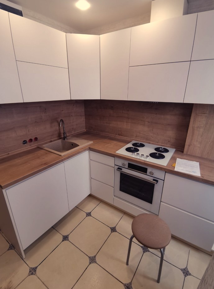 Угловая кухня с зашивкой трубы