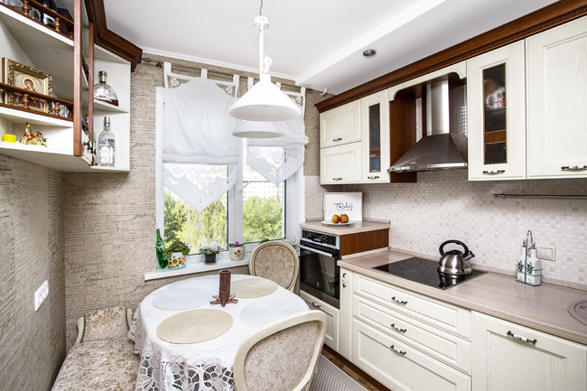 код 53293Фасады сливочного цвета. Декор резными деталями.