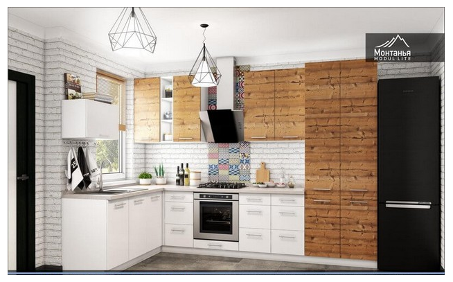 Интересная модель в современном дизайне не оставит равнодушных. Материал - ЛДСП Egger, удобная угловая конфигурация. Комплект оснащен Вертикальным шкафом, тумбами. Многообразие полочек и ящиков позволяют разместить все необходимые предметы для кухни.Фурнитура в виде продолговатых металлических ручек придаёт изящный внешний вид данной модели.