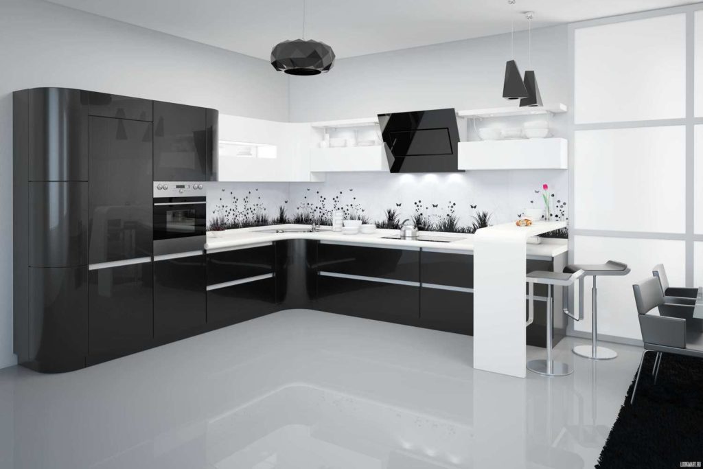 Множество зон хранения. Столешница с текстурой под мрамор.