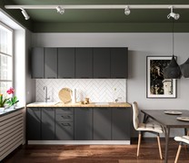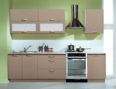 Современная линейная кухня с вместительными шкафчиками. Качественные материалы.