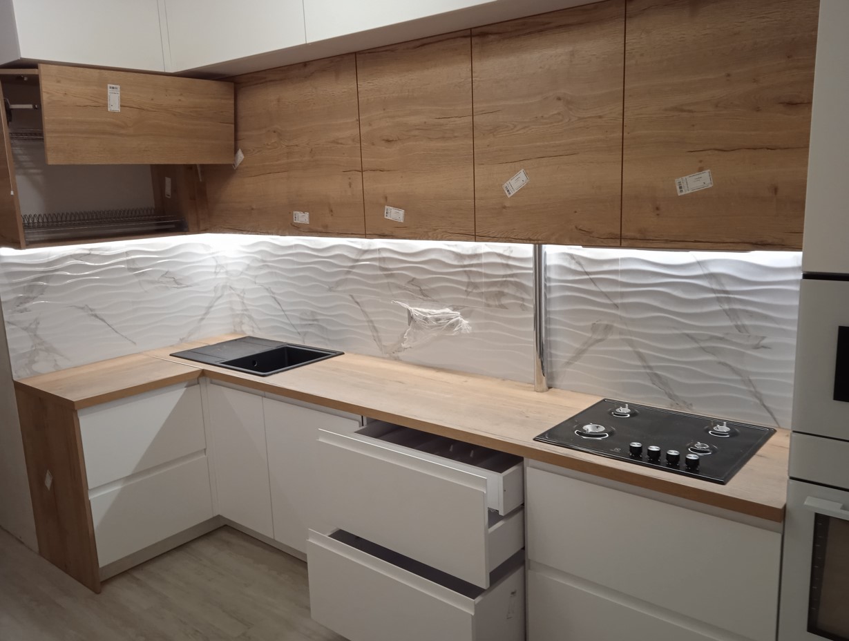 Кухня угловая «Терра Gloss 1.8х3.5м» - Белый глянец