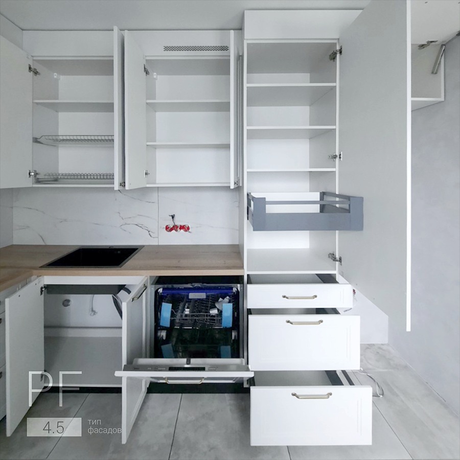 Мебельные фасады: Pan Fasad ТМ (Беларусь), тип фасадов 4.5 на основе МДФ крашеные матовые.