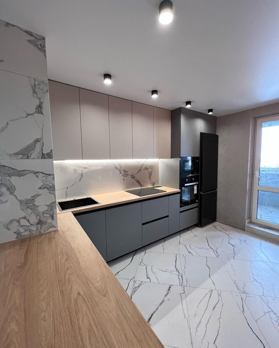 Современные фасады ДСП в серых тонах.