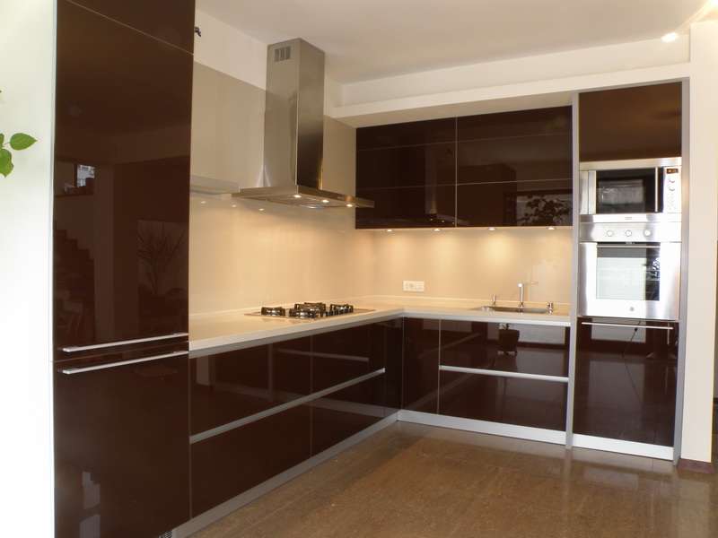 Глянцевое покрытие фасадов. Ниши для кухонной техники.