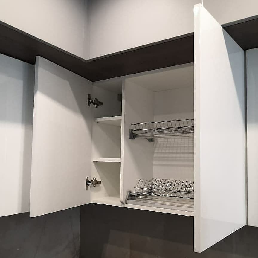 Подсветка в навесных шкафах. Фрезеровка на фасадах и боковинах.