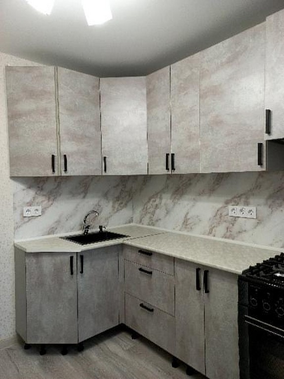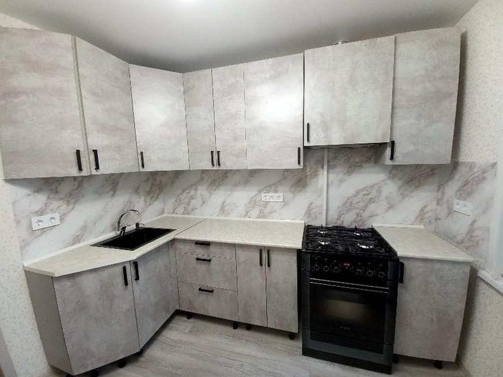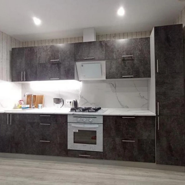 Прямая кухня «Оля» МДФ 1.6/3 м, мрамор серый/мрамор графитовый