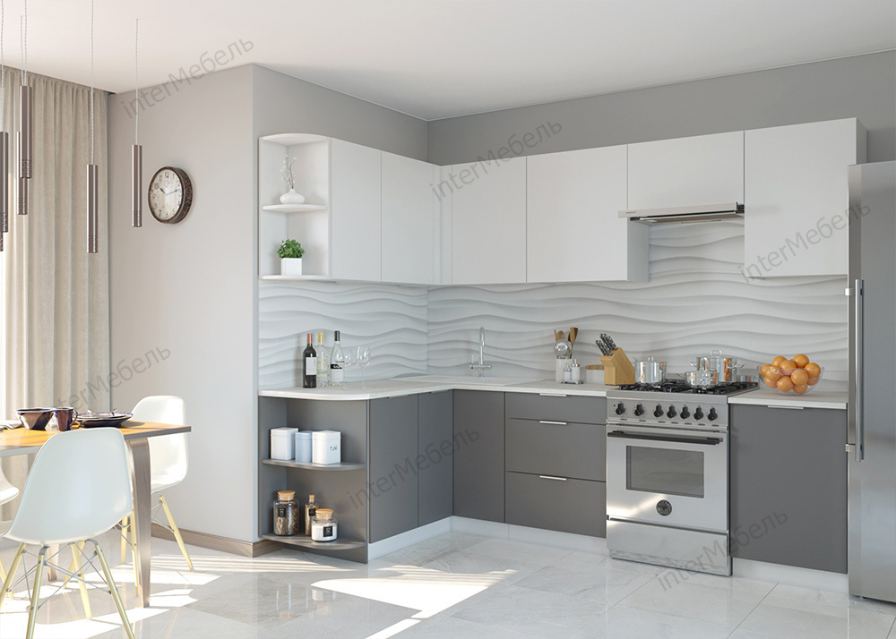 Угловая модульная кухня «Mix Top» 2.6х1.5 м, белый-графит серый