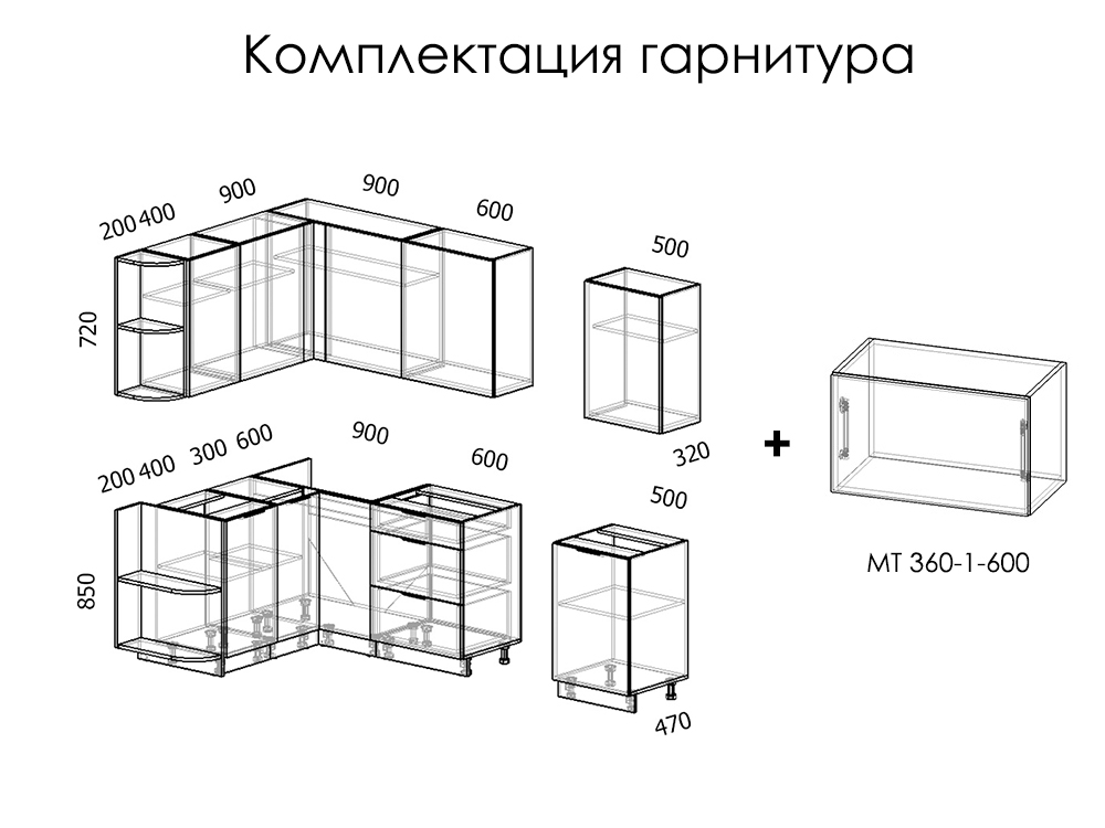 Внимание! Стоимость готового гарнитура указана без учета столешницы. Мойка и сушильная арматура также приобретаются отдельно.