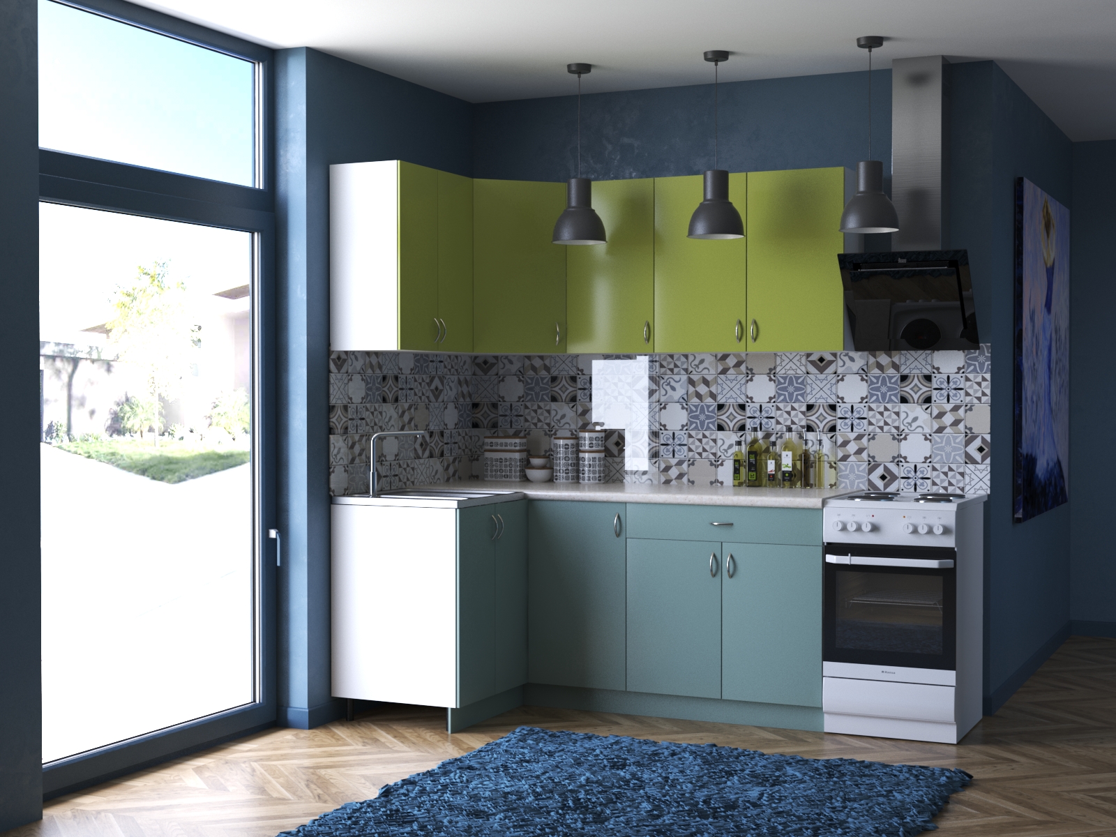 Кухня прямая «Агата» 2.1 м Файнлайн крем - Зеленая мамба