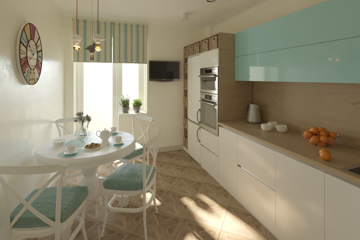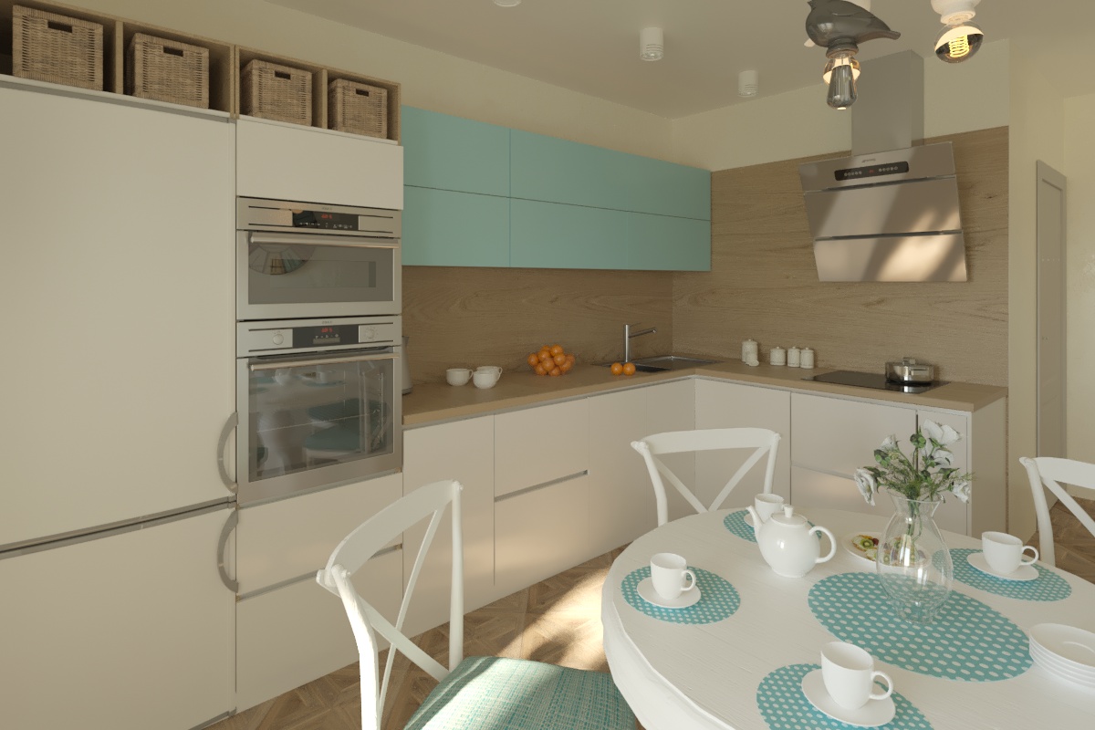 код 90459Верхний модуль бирюзового цвета. Отделения для встраиваемой техники.