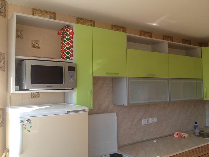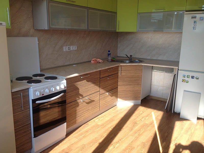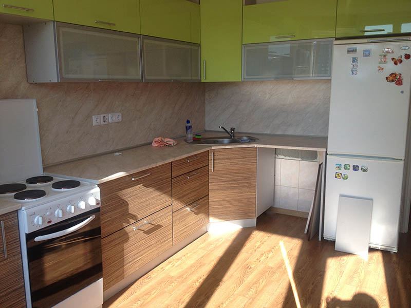Материал фасада и корпуса: ЛДСП 16 мм. Ширина кухни 210 см.