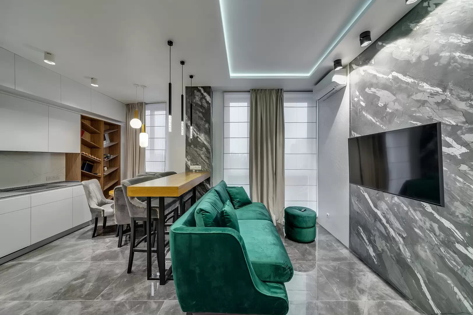 Светлые глянцевые фасады. современная и надежная фурнитура, ниши для техники.