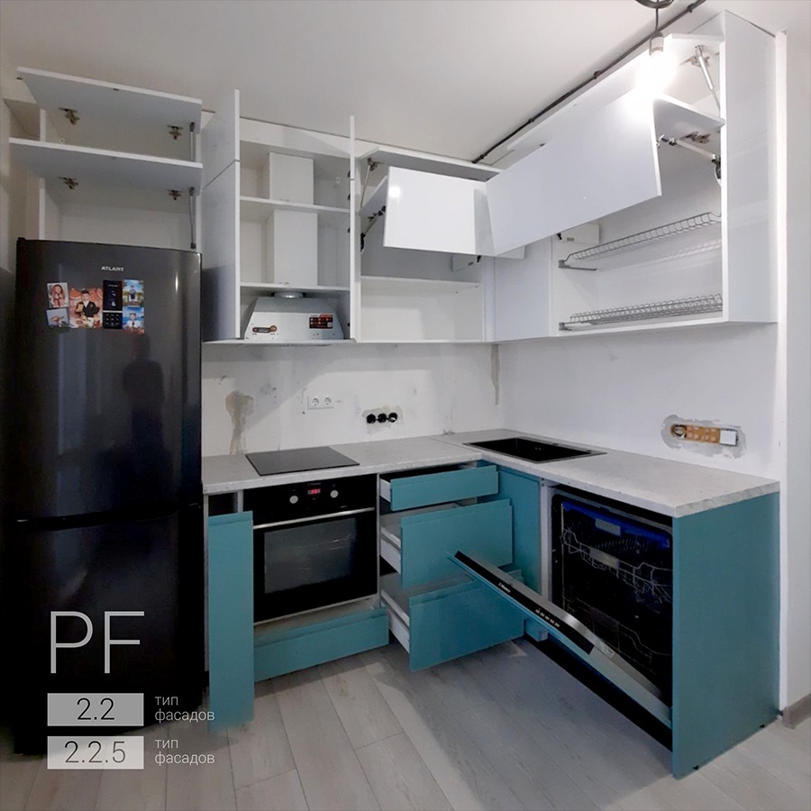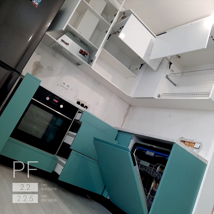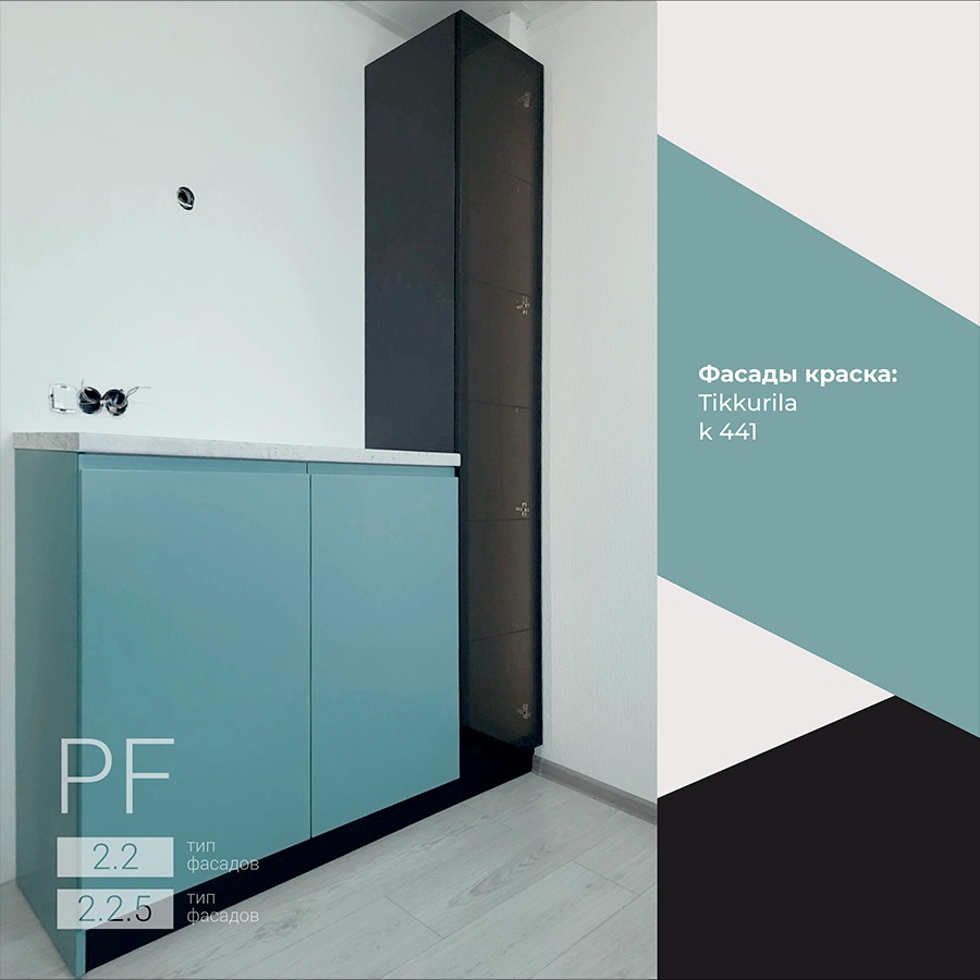 Мебельные фасады: Pan Fasad ТМ (Беларусь), тип фасада - 2.2 акриловые фасады Senosan, цвет 11046, тип фасада 2.2.5 на основе МДФ, крашеные фасады по палитре Tikkurila, цвет K441