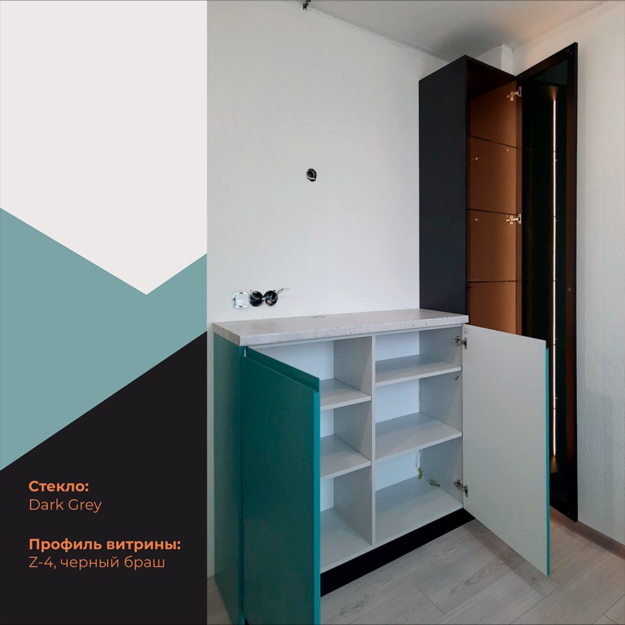 Витрина: алюминиевый профиль Z-4, цвет Черный браш, наполнение стекло Dark Grey