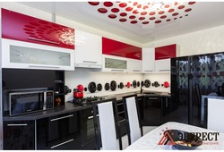Угловая кухня от белорусской фабрики. Стильный цветовой контраст черного и красного.