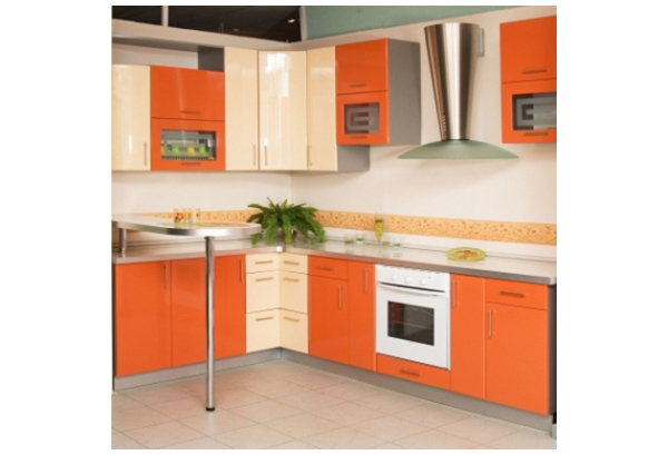 Кухня угловая из пластика в оранжевом цвете