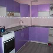 Кухонный гарнитур с глянцевыми сиреневыми фасадами