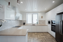 Современная кухня в скандинавском стиле. Светлые фасады из ДСП.