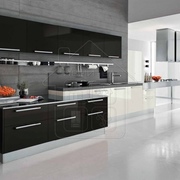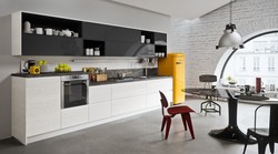 Линейная кухня с черным глянцевым островом
