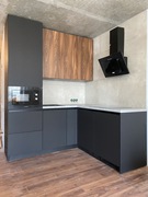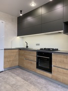 Длина кухни: 2.8х1.4 м + 2.2 м. Материал фасада: ЛДСП.