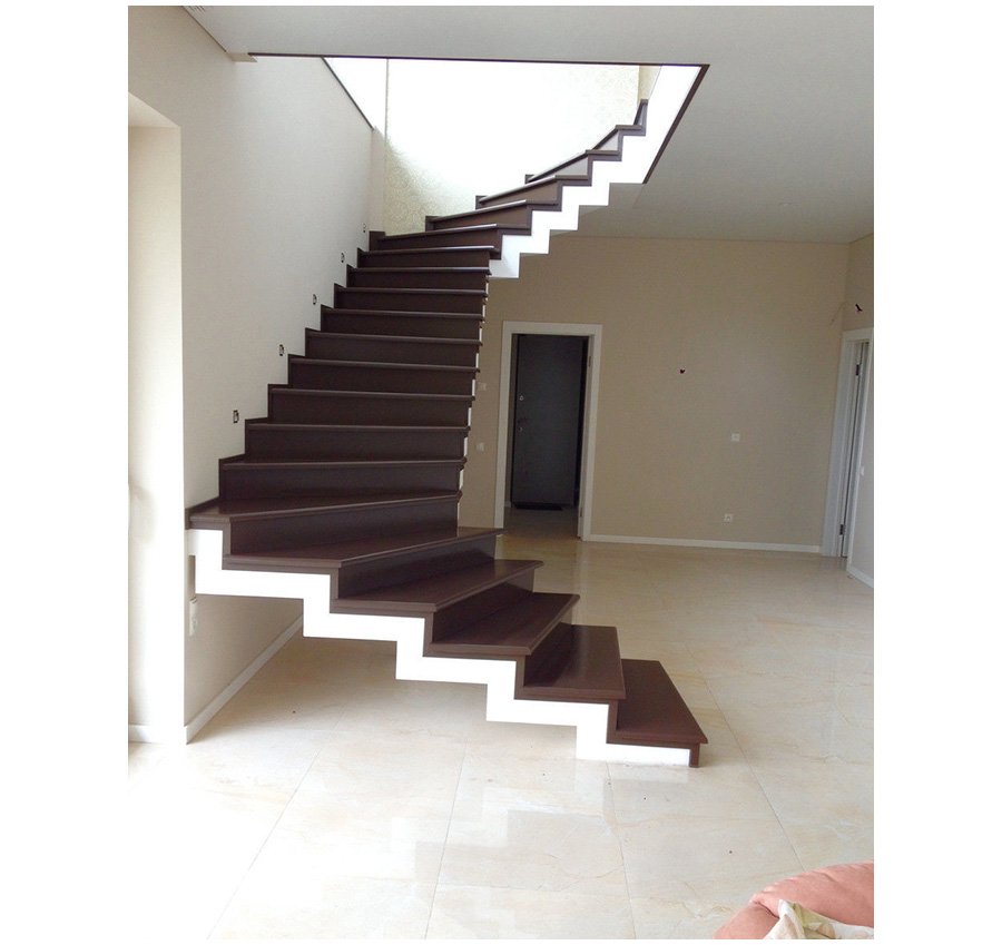 Лестница, выполненная из натурального массива, представлена в современном стиле. Модель хоть и не оснащена привычными перилами, является достаточно удобной и практичной конструкцией.