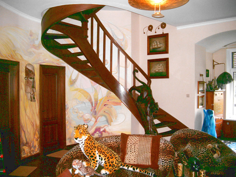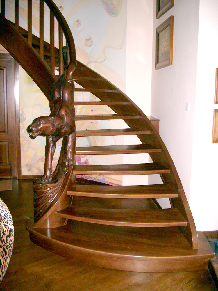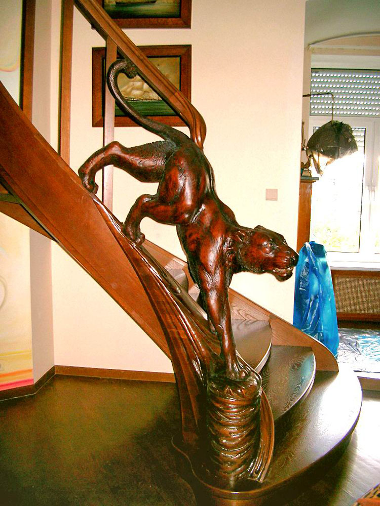 Лестница с пантерой из массива