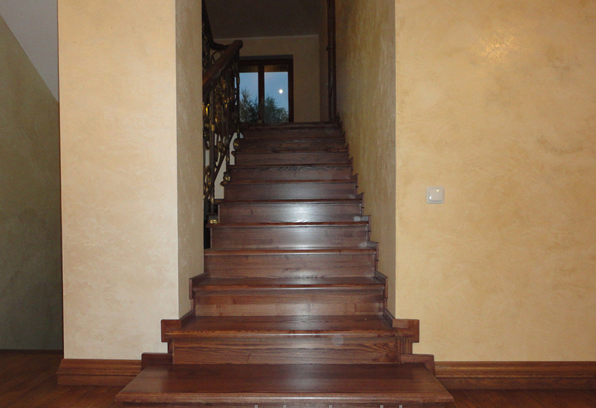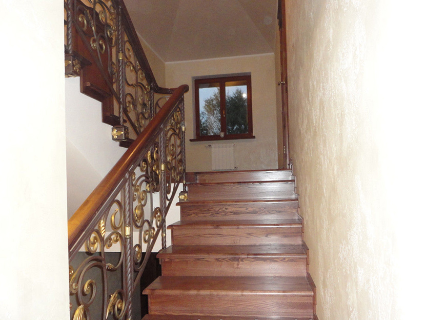 Стильная лестница из массива ясеня под тонировкой подчеркнет ваш безупречный вкус. Лестницу украшает роскошное кованое ограждение, которое придает внешнему виду изделия неповторимость и оригинальность.