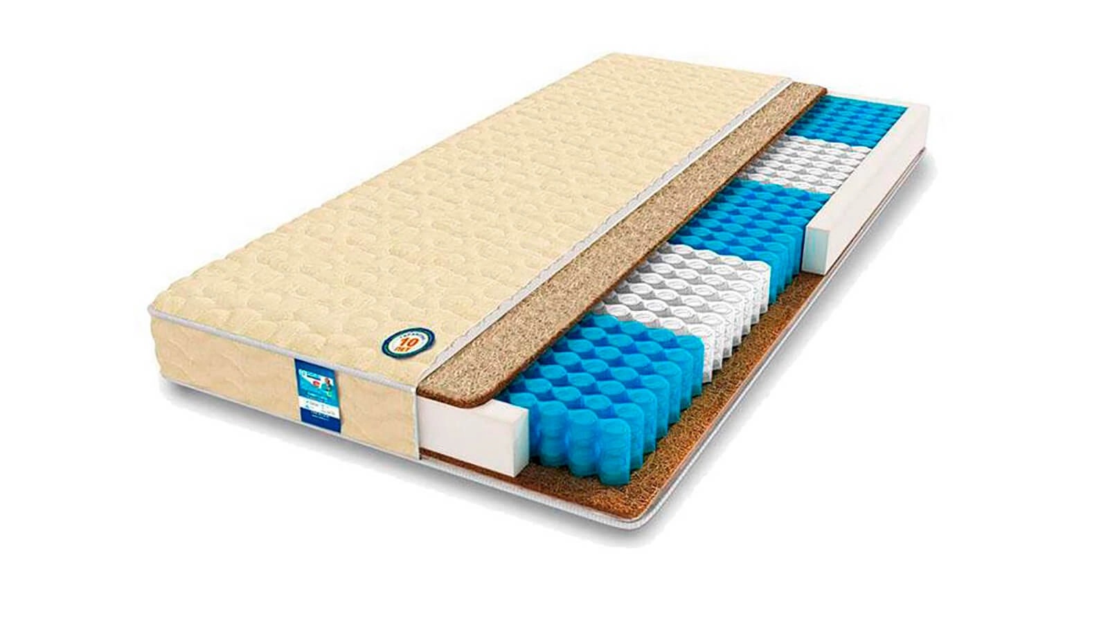 Средне-жесткий матрас с настилом из кокосового волокна и термофайбера.