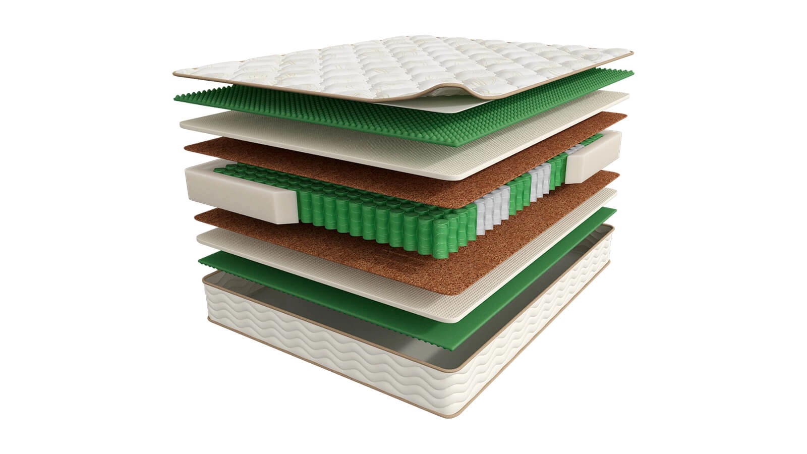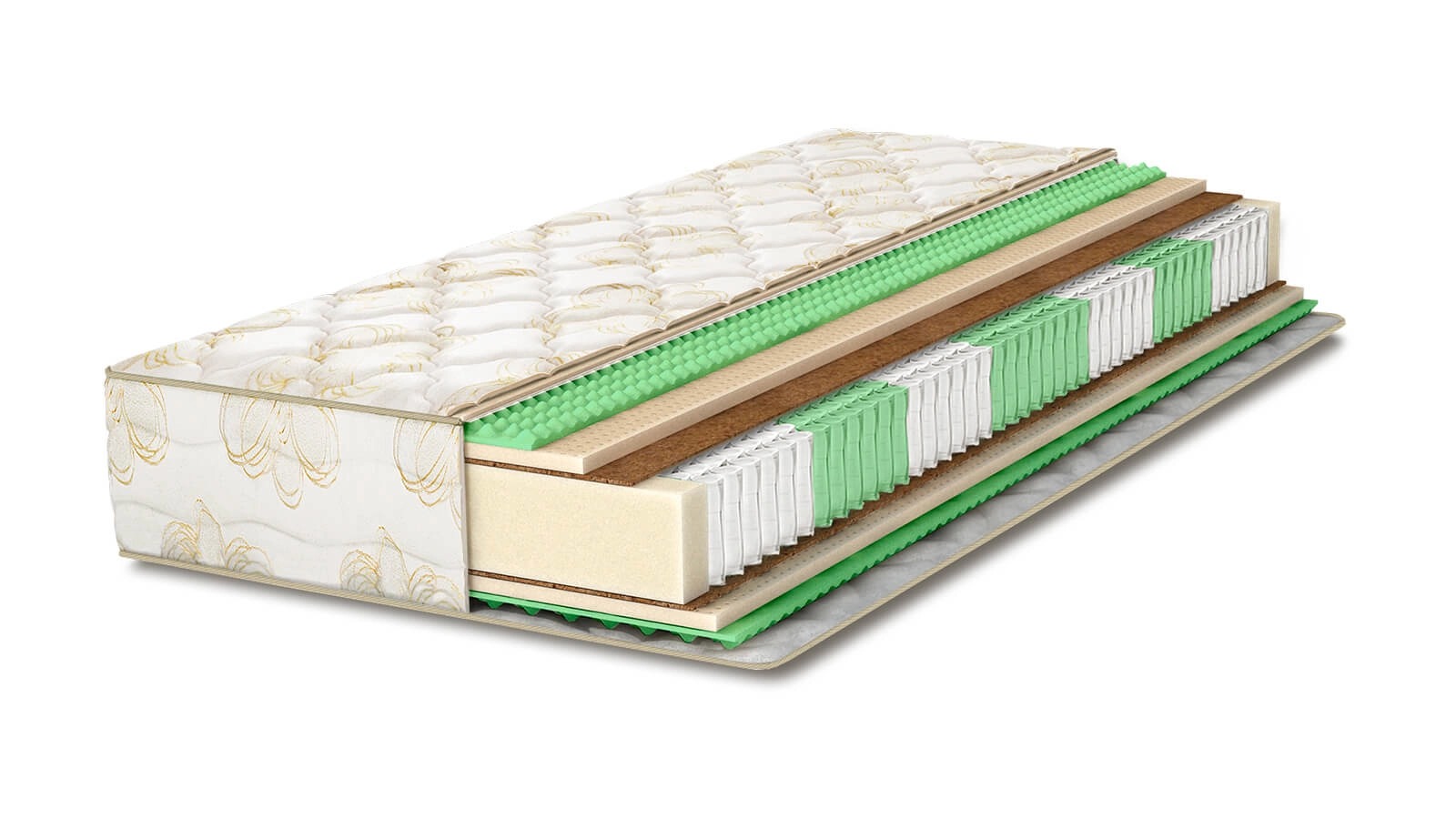 Жесткий ортопедический матрас с блоком независимых пружин и кокосом. Высота: 19 см.