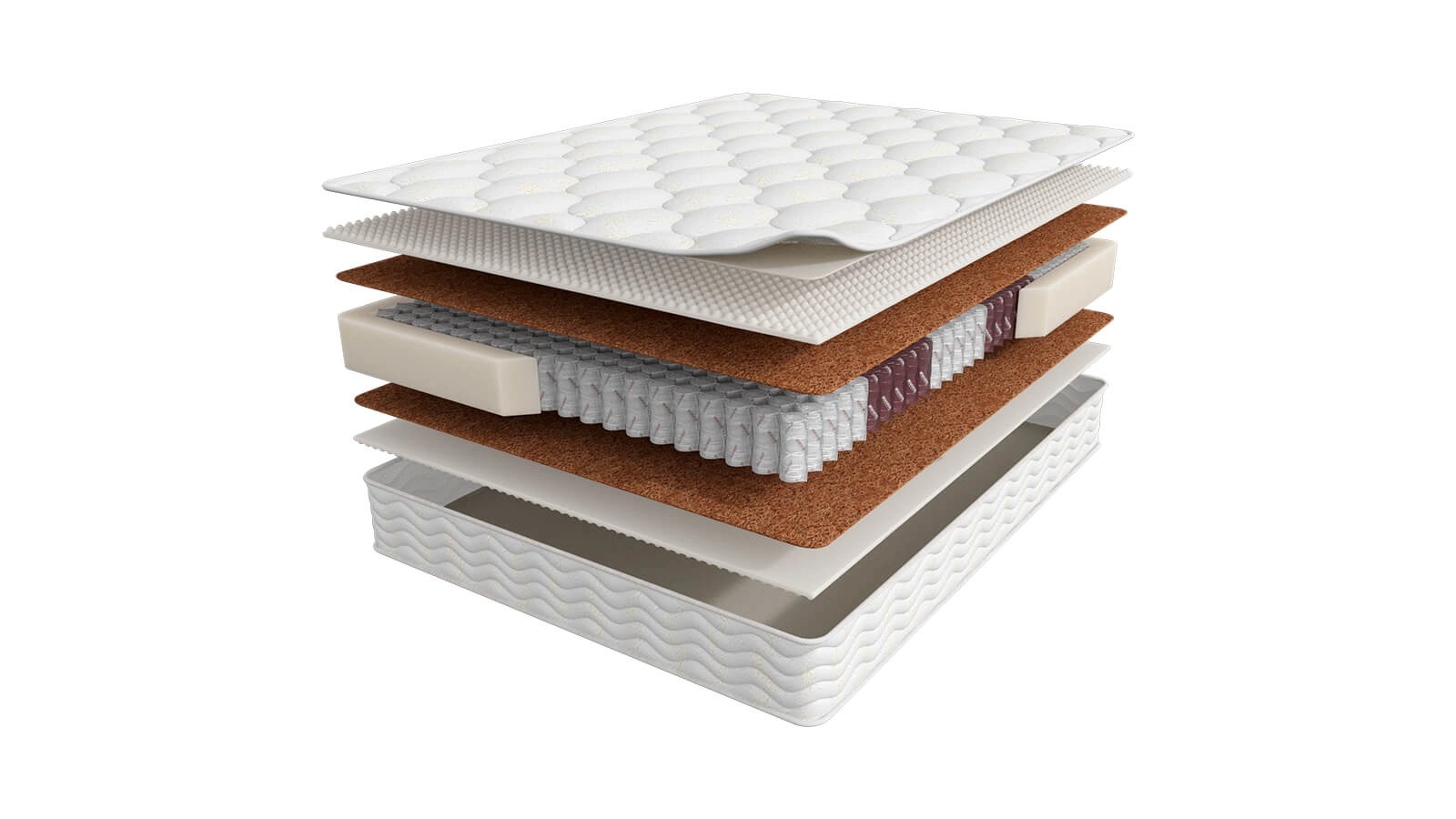 Жесткий матрас с блоком независимых пружин и кокосовым волокном.