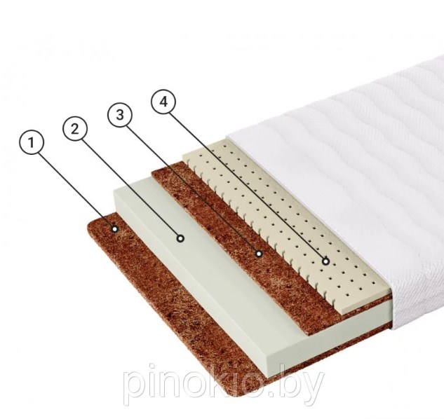 Средне-жесткий матрас с настилом из кокосового волокна и термофайбера.